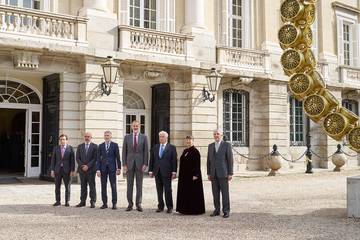 A su llegada al Palacio de Liria para la inauguración de esta exhibición artística, Don Felipe fue recibido por el ministro del Interior, Fernando Grande-Marlaska; por el delegado del Gobierno en la Comunidad de Madrid, Francisco Martín Aguirre; el alcalde de Madrid, José Luis Martínez-Almeida; y por el presidente de la Fundación Casa de Alba, Carlos Fitz-James Stuart, duque de Alba de Tormes. Acto seguido, el Rey, igualmente a su llegada al Palacio de Liria, procedió a saludar al embajador de la República Portuguesa en España, João António da Costa Mira-Gomes, y a la misma artista Joana Vasconcelos. Un momento que terminó por inmortalizarse en una primera fotografía de grupo, y tras el cual la comitiva presidida por Felipe VI pasó a acceder al interior del Palacio.