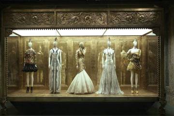 La muestra, estimó, es un reflejo de su "compleja narrativa, artesanía del más alto nivel", y su obsesión romántica con la naturaleza. A la fiesta de inauguración el jueves, asistieron las estrellas británicas David y Victoria Beckham, y las modelos Naomi Campbell, Kate Moss, Eva Herzigova y Poppy Delevigne, así como la actriz mexicana Salma Hayek, el británico Colin Firth y la princesa Beatriz. En las primeras salas se exhiben sus habilidades técnicas, adquiridas como aprendiz en Savile Row, la calle con los mejores sastres de Londres y probablemente del mundo, y se caracteriza por el corte preciso de las curvas y las siluetas exageradas que se convirtieron en su marca registrada.