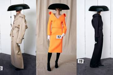 Gvasalia incluyó el amor del fundador por los sombreros en toda esta colección, haciendo referencia a estructuras dramáticas, volúmenes divertidos y estilos poco convencionales. El sombrero cloche de Balenciaga fue uno de los más famosos en los años 50 y 60, y fue lucido en aquella época por celebridades como Gloria Guinness. Sombreros de fieltro sobredimensionados, sombreros en forma de caja de almohada, sombreros en espiral... los diseños eran infinitos, pero todos extravagantes y jugaban con la escala, la forma y los tejidos singulares.