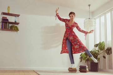 La colección Otoño/Invierno tiene prendas clave como un vestido drapeado rojo con estampado floral, un vaquero acampanado recortado de dos tonos o un par de botines elásticos fucsia. También hay sitio para los básicos atemporales, como un trench de cuadros, camisetas con logos y una gama denim. Además de los ocho looks de la campaña también incluye una selección de prendas como chaquetas biker, chubasqueros de vinilo, trajes de dos piezas metálicos y de terciopelo, vestidos de estampado floral y botines con kitten heels.