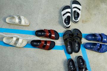 Con una pasión común por la forma y la funcionalidad, la colección está inspirada en el mix entre la ropa de trabajo utilitarista y el calzado deportivo. Realizados en cuero de becerro specchio pulido, los modelos cuentan con cierres de velcro, en lugar de hebillas metálicas y están rematados con pespuntes industriales en contraste que renuevan las clásicas sandalias Arizona y Milano de Birkenstock.