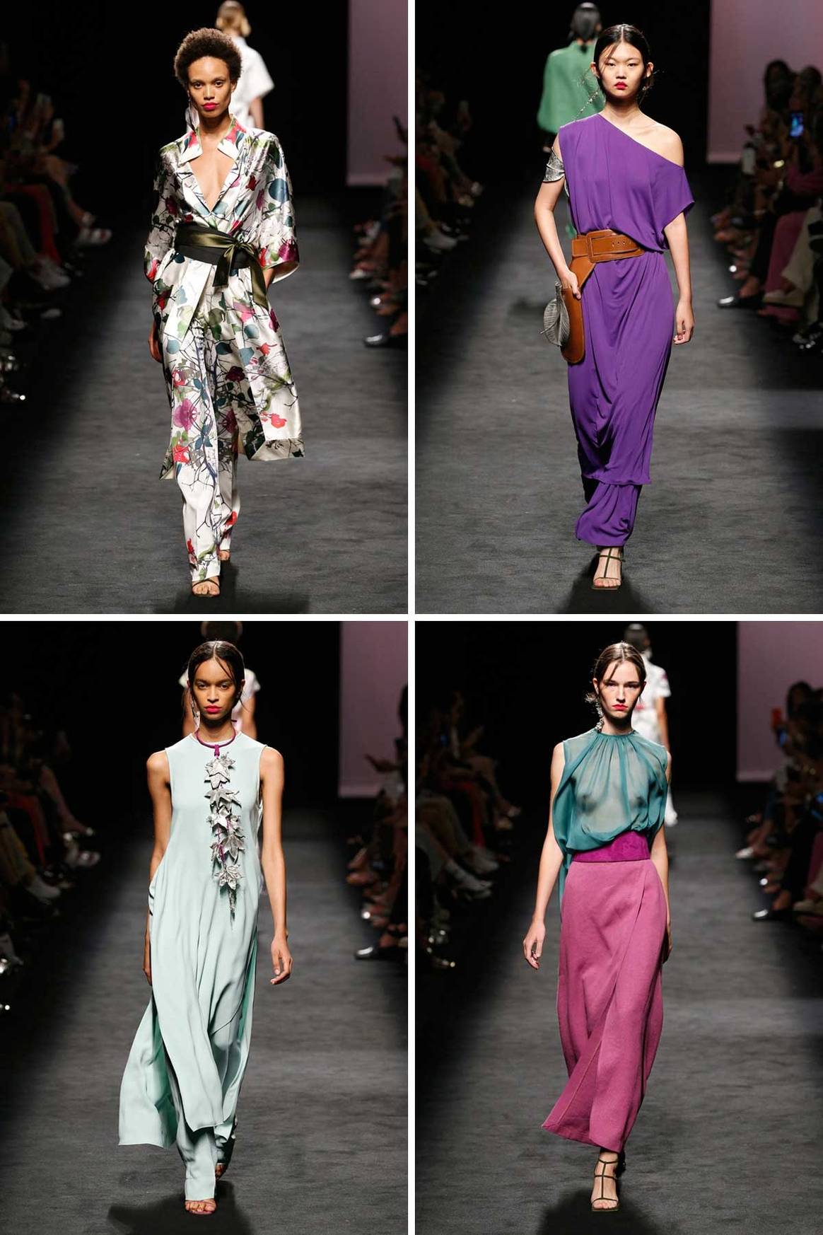 El color volvió a ser el gran protagonista de la colección ideada por el diseñador asturiano Marcos Luengo. Prendas fabricadas en tejidos naturales y livianos como el raso, la gasa, la muselina o el satén, inspiradas en las pinturas del francés Charles Villeneuve. Autor además de algunos de los estampados que se vieron sobre las prendas. Colaboró también en esta presentación la diseñadora Marga García Pinto. Autora de los broches y colgantes plateados de inspiración naturalista que sirvieron como complemento perfecto de los estilismos.