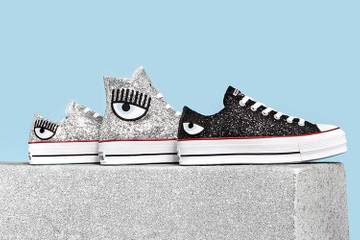 El segundo es un remix de la icónica Chuck Taylor All Star Lift y estará disponible tanto en baja como en alta en acabados glitter negro y plateado. Además, todas las siluetas cuentan con un aplique del icónico ojo de Chiara Ferragni de gran tamaño y una firma de la colección en el opuesto al emblema All Star de Converse.