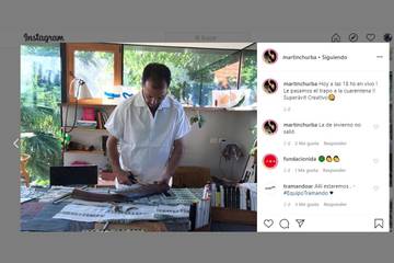 Desde su taller, rodeado de ventanales desde los que se puede ver un paisaje de naturaleza y con música de fondo, Churba comparte su trabajo creativo con materiales de desecho que todos pueden tener en casa. “Voy pensando en cosas que tenemos a nuestro alcance para hacer cosas divertidas, el sentido es estar bien y crear con lo que tengo. Todo lo que guardamos inútilmente hoy tiene sentido …. como un poster de una exposición vieja que me gustaba por los colores, cosas de la cocina, packagings, bolsas”, dijo en su Instagram Live de este lunes en el que mostró cómo hacer un origami fácil para plegar y recortar.