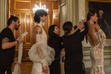 Por su parte, Guillermo Décimo exploró la moda desde una perspectiva artística con “El baile de máscaras”, una colección cápsula presentada en forma de ilustraciones sobre una cena privada en el restaurante Cornamusa. La propuesta rindió homenaje a los rituales previos a la confección de un traje de costura, concebidos por el diseñador como “un ritual en el que artesanía, tradición, cuidado por el detalle, creatividad e inspiración se dan la mano”.