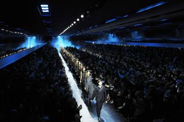 Retomó además una silueta de 1949 inspirada en las túnicas del pastor, con largas capuchas, creando un look monacal. El terciopelo, los pliegues y los volantes están muy presentes en esta colección otoño-invierno. En este universo azul, el apego de Christian Dior por los astros es recordado con cometas y lunas estampadas en suéters y faldas. Rihanna, imagen de la firma, asistió al desfile celebrado en el museo Rodin, así como Kate Moss y Uma Thurman.