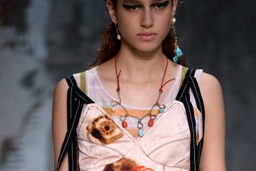 Marni ha trabajado con el artista adaptando dos de sus obras: “Rob Him of Pleasure” de 1979, y “The Fourth Since I Came Up” de 1980. Mediante el hábil manejo de las proporciones y las capas, sus motivos se han convertido en estampados artísticos que cobran vida en vestidos fluidos de seda, batas largas, y blusas deconstruidas.