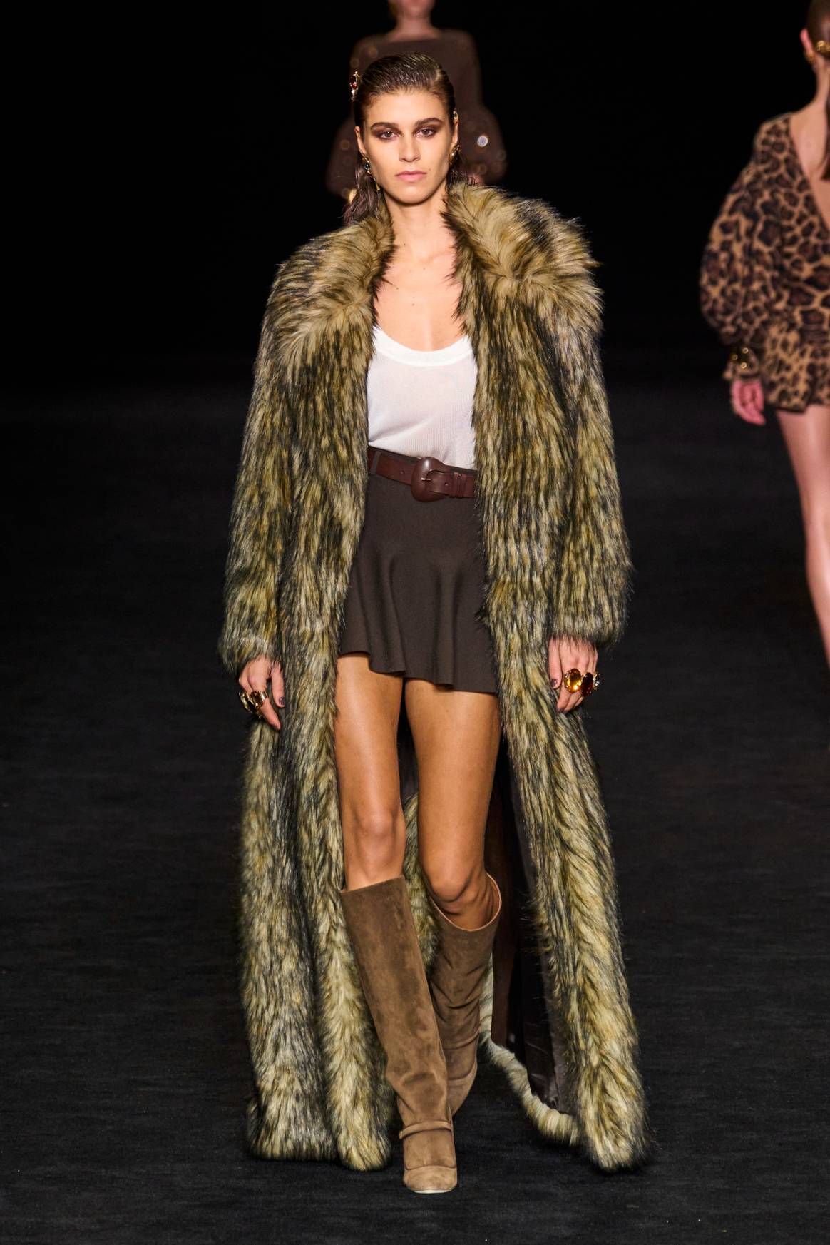 Un impresionante abrigo de piel es la base de cualquier look de “mob wife”, pero, naturalmente, debe ser de piel sintética. Varios cortes y estilos funcionan, incluyendo los sobredimensionados y en colores naturales, ajustados con un cinturón, largo hasta el tobillo o en estampado de leopardo.