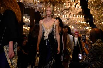 ¡Qué espectáculo! A principios de noviembre, 115 modelos y celebrities, incluidos Macaulay Culkin, St. Vincent, Miranda July, Jodie Turner-Smith y Jared Leto desfilaron por Hollywood Blvd. con looks de la marca como vestidos de lentejuelas, boas y trajes de tres piezas al estilo de los años setenta, que hacían referencia a la época dorada de la maison y su conquista de Hollywood.