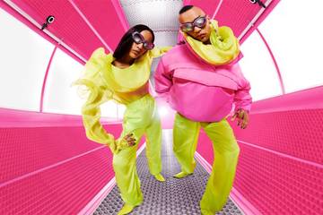 Partiendo de estas características compartidas por cada una de las piezas de la colección, y sobre una paleta construida a base de destellos luminosos en amarillos neón, rosas chicles y fucsias, aguamarias y azules klein, y sobre un manto de negros y plateados, nos encontramos con una colección en la que se funden realidad y fantasía, minimalismo y extravagancia. Principios contrapuestos que logran fusionarse dentro del marco de esta propuesta —adelantada a través del lanzamiento de una campaña protagonizada por la pareja de hermanos Joel y Georgia Palmer—, en la que como piezas clave encontraremos un anorak fucsia de corte oversize, un traje de dos piezas con pantalón acampanado en azul eléctrico y acabado de terciopelo, un vestido plateado de lentejuelas con volantes, una camisa a juego, diferentes vestidos de estampado efecto “estelar”, vaporosos cuerpos adornados con volantes o un conjunto “genderless” de pantalón, sudadera y/o body en estampado efecto rejilla.