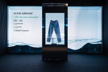 En lo que se muestra así como uno de los mayores y principales atractivos con los que van a llegar dotadas las colecciones que terminen viendo la luz bajo el paraguas de esta nueva marca, desde Guess ya nos adelantan que las propuestas de la marca llegará confeccionadas en materiales orgánicos o reciclados. Una materia prima más comprometida con el medio natural y de un menor impacto ambiental, de entre la que destacan el uso de botones metálicos fabricados con un 90 por ciento de aleaciones obtenidas a partir de material reciclado, de etiquetas hechas de papel reciclado con certificación FSC, del uso de tejidos acolchados para las prendas de abrigo hechos en 100 por cien Pet reciclado Repreve, de botones no metálicos hechos con poliéster 100 por cien reciclado, de etiquetas para el interior de las prendas fabricadas igualmente en poliéster 100 por cien reciclado, o del uso de fibras de nylon fabricadas a partir de poliamida 100 por cien reciclada. Unas medidas introducidas como muestra del firme compromiso de la nueva marca con la sostenibilidad, y que se terminarán de ver acompañadas, cuando no justamente impulsadas, por el uso de la nueva tecnología “Guess Airwash” desarrollada por Jeanologia. Una tecnología de lavado que permite reducir en hasta un -80 por ciento el uso de agua frente a los métodos tradicionales del lavado de vaqueros, y con la que desde Guess pasan a sustituir el tradicional lavado a la piedra por un nuevo proceso que evita igualmente el uso de piedras pómez y de productos químicos agresivos, al tiempo que reduce el consumo tanto de agua como de energía, obteniendo el mismo resultado estético, pero conseguido a partir de la utilización de aire, luz y burbujas. Tecnología sobre la que Guess va a conservar la exclusividad global, durante un largo periodo de tiempo que, no obstante, no se ha terminado de concretar.