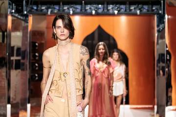 “‘Holi’ encapsula la magia del festival, invitando a sumergirse en un mundo donde la moda se convierte en una expresión de alegría y vitalidad", apunta la propia Alejandra Valero, directora de diseño de Hoss Intropia, a lo largo de unas declaraciones compartidas por la firma con FashionUnited antes de la celebración del desfile. “El espíritu alegre y festivo de esta colección se traduce en diseños especiales con infinidad de detalles” y especialmente ideados “para bailar y celebrar”, añade, en relación con unas “prendas y complementos perfectos para fluir y liberarse”, y “para vestir y brillar en ocasiones especiales, desde el día hasta la caída de la noche”.