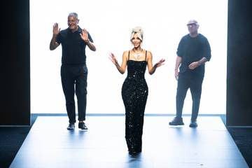 En la sala, Kris Jenner, la madre de Kim, su hija North y una de sus hermanas estaban en primera fila para aplaudir a la reina de las redes sociales, quien saludó con una reverencia el final del desfile, en compañía de los dos creadores, Domenico Dolce y Stefano Gabbana (AFP).