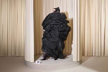 “La pieza final es un efímero vestido de nailon negro que solo existe durante un único evento”, concretan desde la dirección de Balenciaga. Y es que, “hecho de 47 metros de tela y ensamblado por el equipo del ‘atelier’ de alta costura desde un coreografiado proceso directamente alrededor del cuerpo” de quien lo fuera a llevar, detallan desde la casa de moda francesa, este diseño, sostienen, “está destinado a usarse solo una vez”. Una naturaleza efímera, con la que Demna vuelve a realizar un ejercicio de sutil provocación, y reflexión, enfrentando a la natural atemporalidad de la Alta Costura con la efimeridad que marca a la sociedad de hoy.