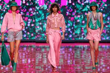 La colección, creada para celebrar la primavera y preparar la llegada del verano 2022, ha florecido sobre la pasarela madrileña valiéndose de la estética geométrica, vegetal y colorista que inspiró a los jardines de Versalles y con la que la diseñadora de esta firma española ha conseguido mantener su identidad de marca que destaca siempre por ser colorida, jovial y alegre.