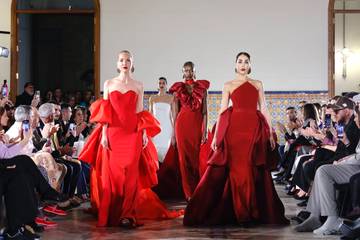 El evento comenzó con la teatralidad de Carlos Haro, cuyos vestidos destacaron, además de por su colorido, por sus volúmenes y detalles dramáticos. Le siguió Hannibal Laguna con “Whiteland”, su colección bridal que transformó la pasarela en un jardín bucólico, donde los crêpes de seda y bordados con hilos de cristal esculpieron la silueta femenina con elegancia atemporal.