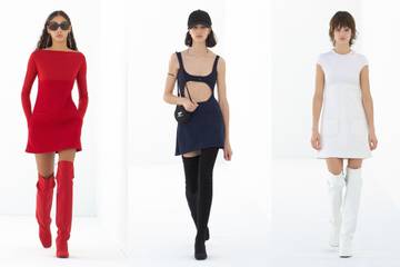 El fondo blanco contrastaba con los bajos cortos, los de cortes extremos, las formas geométricas y las formas voluminosas, limpias y redondeadas, en una paleta de colores teñida de rojo, blanco, beige, azul y negro.