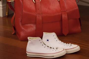 Además de su propia colección, el diseñador también ha colaborado con marcas de prestigio para aderezar su desfile como Converse, quién ha apoyado al creador vistiendo los pies de algunos modelos con icónica sneaker Chuck Taylor All Star.