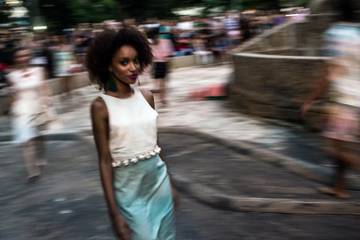 Veinte modelos, hombres y mujeres, portando diseños de la 'Colección Rio 450 años' (aniversario que la ciudad celebró el domingo) participaron en un Flash Mob con una coreografía de la francesa Maryam Kaba al ritmo de la música de DJ Gringo da Parada, Jerome Pigeon. Antes de la actuación, sobre la fuente seca de una de las plazas del barrio, los participantes en el desfile mostraron carteles en los que se podía leer "Yo soy Casa Geraçao" o "Sólo nos queda la calle". Los 20 modelos que presentaron fueron creados por jóvenes diseñadores de la favela de Vidigal (sur de Rio de Janeiro).