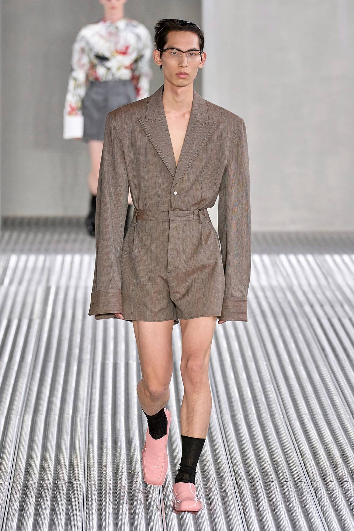 “La colección de moda masculina de Prada Primavera/Verano 2024 de Miuccia Prada y Raf Simons, propone la libertad más absoluta del cuerpo, expresada a través de los fundamentos de las prendas que lo visten”, esgrimen a modo de explicación de esta propuesta desde la misma casa de moda italiana. Una colección que viene así a presentar como un construcción de “arquitectura fluida” en torno al cuerpo humano, que como punto de partida toma al modelo de camisa convencional, para a partir de ahí reconstruir toda la identidad del hombre, a través de su armario.