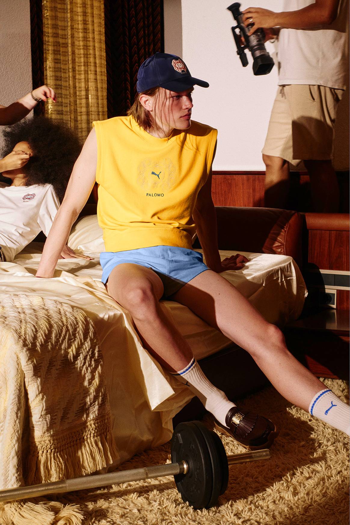Inspirada en la estética que rodeaba al mundo del fútbol de los años 70, tanto dentro como fuera del campo de juego, como principal referencia de la colección se levanta la figura de ni más ni menos que de Johan Cruyff. Quien fuera el jugador estrella del Fútbol Club Barcelona, institución de la que más adelante llegaría a convertirse en entrenador y hasta en ostentar la dignidad del cargo de presidente de honor, al que el propio Alejando Gómez Palomo, fundador y director creativo de la firma de moda Palomo Spain, no duda en asimilar como la que sería la representación física de la estética y los ademanes canónicos de la firma, en relación con el mundo del deporte. Un ambiente que hasta ahora se mantenía alejado de lo que había venido siendo su trayectoria como diseñador, y al que vía esta asociación con Puma se le ha abierto ahora una venta para su exploración, a través de un proceso que le ha permitido al diseñador entrar a subvertir buena parte de los límites heteronormativos que, a pesar de los tiempos que corren, siguen dominando sobre toda la escena que rodea al calificado como el “deporte rey”.