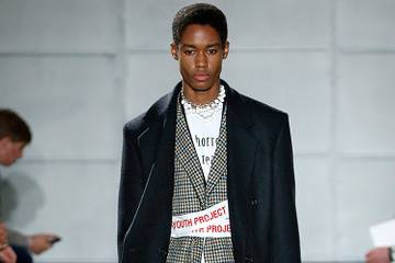 Había una sensación de un nuevo uniforme para esta colección. Los abrigos de satén se sentían militares y "adecuados", quizás porque los modelos que los llevaban eran simples muchachos. La silueta era como vimos en París, de gran tamaño y holgada. Los chalecos, cerrados con cinta adhesiva, se usaban con pantalones espaciosos, mientras que los géneros de punto llegaban en bandas descabezadas con hombros caídos y longitudes variables, una continuación de SS17.