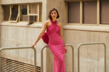 Entre cuellos “halter”, lazadas y esculturales líneas columna