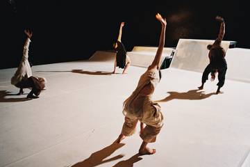 La colección mixta de Qasimi se inspiró en las líneas arquitectónicas islámicas y brutalistas en una paleta que canalizó los colores vibrantes del subcontinente indio. Los escotes y las siluetas en forma de túnica se hicieron eco de la vestimenta tradicional de Oriente Medio, terminados con técnicas de impresión como el ikat, las rayas multidireccionales y degradados de color. Una combinación de telas técnicas modernas y técnicas artesanales tradicionales incluyó tejidos safeefah y macramé mezclado con malla, y zapatillas y sandalias terminadas con cinta trenzada de colores brillantes.
