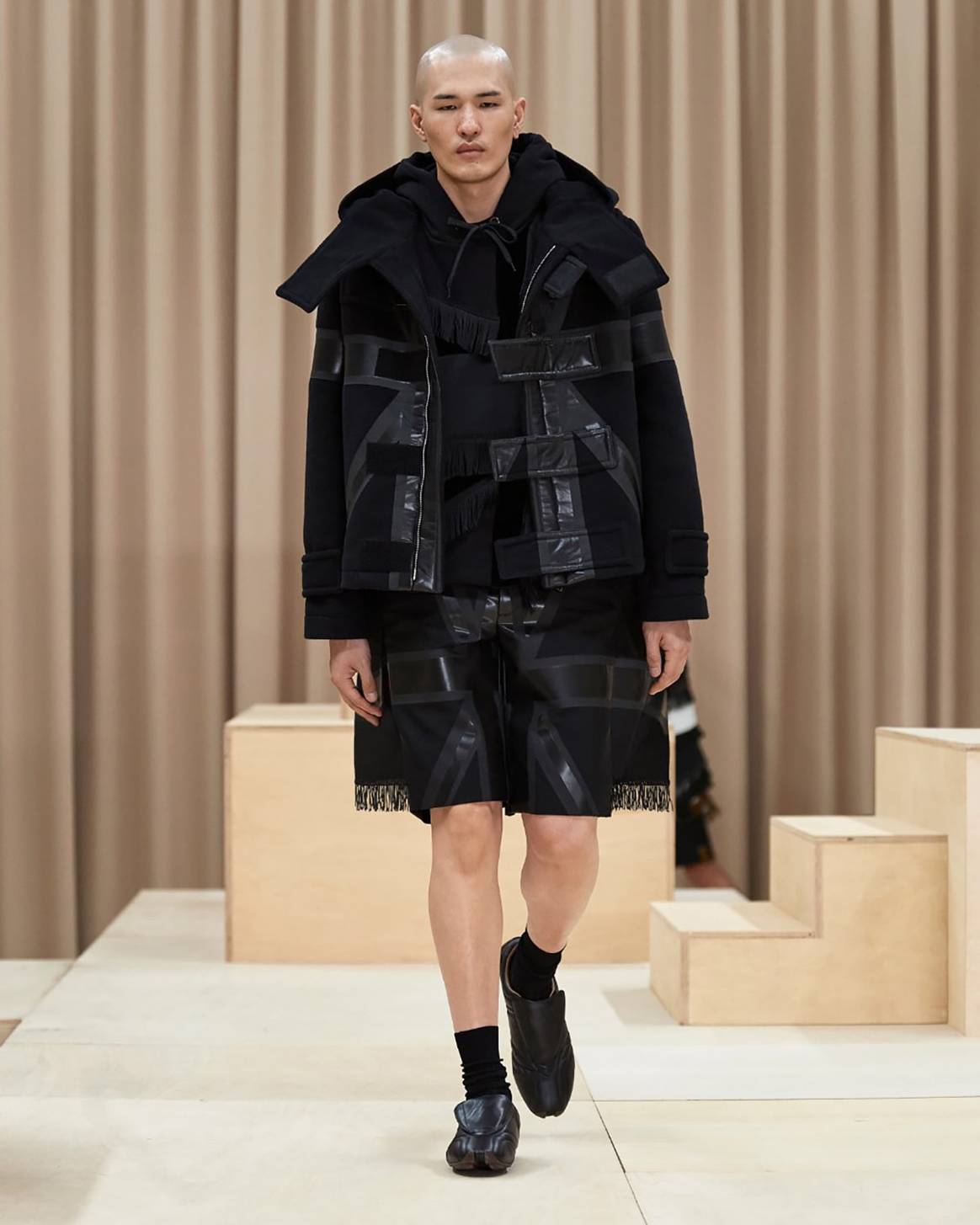 Al tiempo, se lleva a cabo una nueva reinterpretación de los códigos del mundo animal de Burberry. Que se revisita una vez más a través de estampados y de formas, manifestando toda su magia de la mano de unos gorros de punto inspirados en las siluetas de los ciervos, o mediante unas botas y zapatillas de deporte moldeadas para que las suelas parezcan pezuñas.