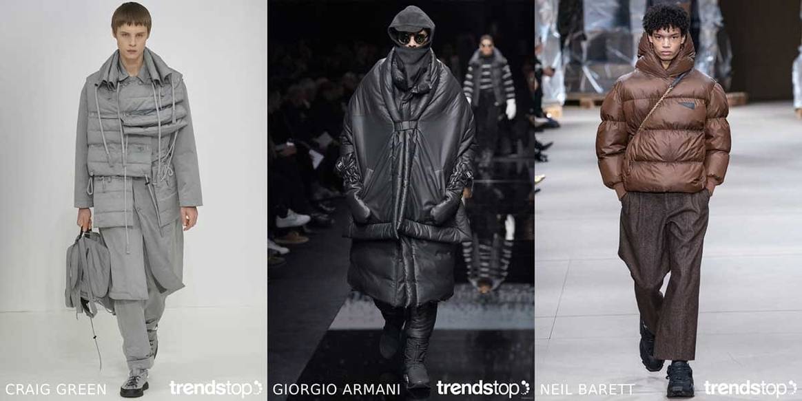 El acolchado conquista las prendas de calle con propuestas urbanas. Los acabados tipo edredón visten anoraks ligeros, siluetas en forma de tienda de campaña y prendas de inspiración muñeco Michelin, y se alían con piezas de sastrería. Los detalles con vocación deportiva en tonos rotundos como el negro añaden un plus a este mix.