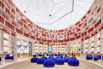 El arquitecto nacido en Burkina Faso, Diébédo Francis Kéré, ha creado un espacio pop-up para la casa de zapatos Camper dentro del campus de Vitra en el domo de Buckminster Fuller (Suiza).