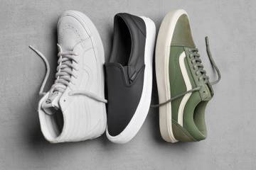 Las Old Skool, las Sk8-Hi y las Slip-On se versionan en cuero negro, blanco y verde en sintonía con su estilo atemporal. Los reflectantes de metal por su parte están inspirados en Refshaleøen, una antigua isla industrial situada en el puerto de Copenhague, la cual ha sido una fuente clave de inspiración para esta colección cápsula.