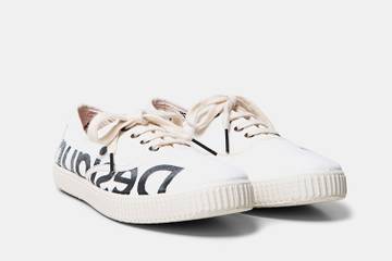 En cuanto al modelo “Verano Balearic” (45,95 euros), este presenta la versión más clásica y conocida de las Victoria, ahora en blanco y con el nuevo logo de Desigual en tamaño XXL sobre el costado. Diseño que por su parte encuentra su fuente de inspiración en esos veranos en los que “nuestros padres y abuelos nos llevaban a la playita más cercana. Plantábamos la sombrilla a las 8 de la mañana y comíamos Frigo Pies sin parar. ¡Qué tiempos aquellos!”.