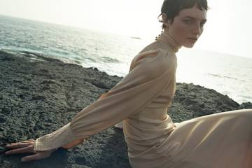 Podríamos clasificar esta colección en dos grupos: por un lado los modelos satinados, y por otro los modelos de inspiración romántica y acabado mate. El primero, se completa con vestidos de cuello halter y hombros al aire, con cuello a la caja y espalda descubierta, detalles con frunces y botones forrados a juego o con tirantes finos, al más puro estilo Carolyn Bessette (mujer del fallecido John F. Kennedy Jr.). En el apartado de los románticos, destacan dos versiones de estilo años cuarenta, ambos con detalles de encaje pero con diferente escote: uno con cuello barco y el otro con escote de pico también en la espalda.