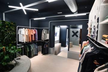 La primera de ellas se trata de una zona digitalizada en la que “el visitante se introduce en el universo Blue Banana, lleno de deporte, aventura y viajes”, pudiendo desde adentrarse en toda la filosofía y la historia de la marca, hasta incluso poder realizar sus compras online mediante el uso de tabletas. Ya en la segunda zona, y rodeados de naturaleza, encontraremos los productos estrella de la firma. Unas camisetas, sudaderas y “hoodies” (sudaderas con capuchas), entre las que se incluyen la colección “Classic” de la firma, con su característica “X” bordada en tejido étnico. Para por último acceder a la tercera zona de la tienda, la “zona más gélida” y en la que se expone su abrigo Jambo. Una prenda que “soporta las bajas temperaturas de este rincón de Fuencarral, igual que lo haría en las pistas de nieve más populares”, que encontraremos junto al resto de la colección técnica de ski de la firma y de sus diferentes accesorios.