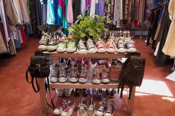 Entre sus percheros y estanterías podrás encontrar una gran variedad de sombreros y tocados, gafas, bolsos, corbatas, joyas, cinturones, guantes, calzado e incluso trajes de novia. Y artículos de firma antiguos: trajes de baño de Valentino, piezas de Louis Vuitton, carteras de Carolina Herrera y, a veces, auténticos vestidos Moschino o Balenciaga.