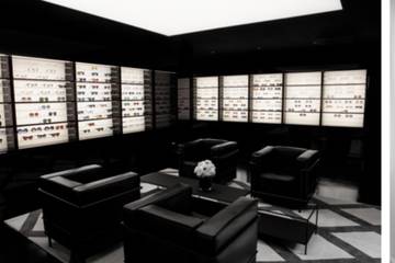 Las opciones de diseño se centran en tres aspectos: el blanco y negro como tema funcional y estético, donde el blanco total identifica los espacios operativos, mientras que el negro total define las áreas representativas; el diseño preciso de ciertos elementos funcionales, como las mesas; la creación de imágenes verdaderamente únicas en las que el tema, las gafas, se divide en detalles más pequeños y luego se vuelve a ensamblar.