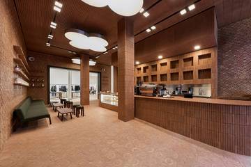 Partiendo de esas líneas generales, para lo que respecta al café de Hermosilla, con una puerta independiente desde la calle que permite que cualquiera pueda acceder al espacio, busque o no busque descubrir las últimas propuestas de moda de la tienda —a la que se abre la misma cafetería desde su interior—, este primer “Zacaffè” de Zara presenta un concepto de espacio desarrollado por la agencia de diseño “Art Recherche et Industrie”, del artista y creativo Ramdane Touhami. Un concepto desarrollado, siguiendo con la línea de lo ya señalado, a partir del estilo neomudejar que caracteriza el edificio de la Casa Árabe de Madrid, y que se ha reinterpretado aquí como base para la ambientación de esta cafetería, a través de paredes y de un suelo recubiertos de elementos cerámicos de barro cocido, con elementos decorativos inspirados en las celosías cerámicas tradicionales de la arquitectura árabe. Mismos elementos que se han llevado a los artículos de “merchandising” de Zara que se comercializan desde este café temático, así como al diseño de la vajilla personalizada de la que podrán disfrutar los clientes de este primer Zacaffè de Zara del mundo.