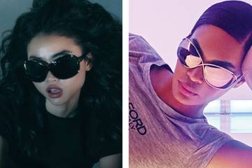 Una glamurosa interpretación del modelo Whitney con montura tubular, frente envolvente y lentes flotantes.